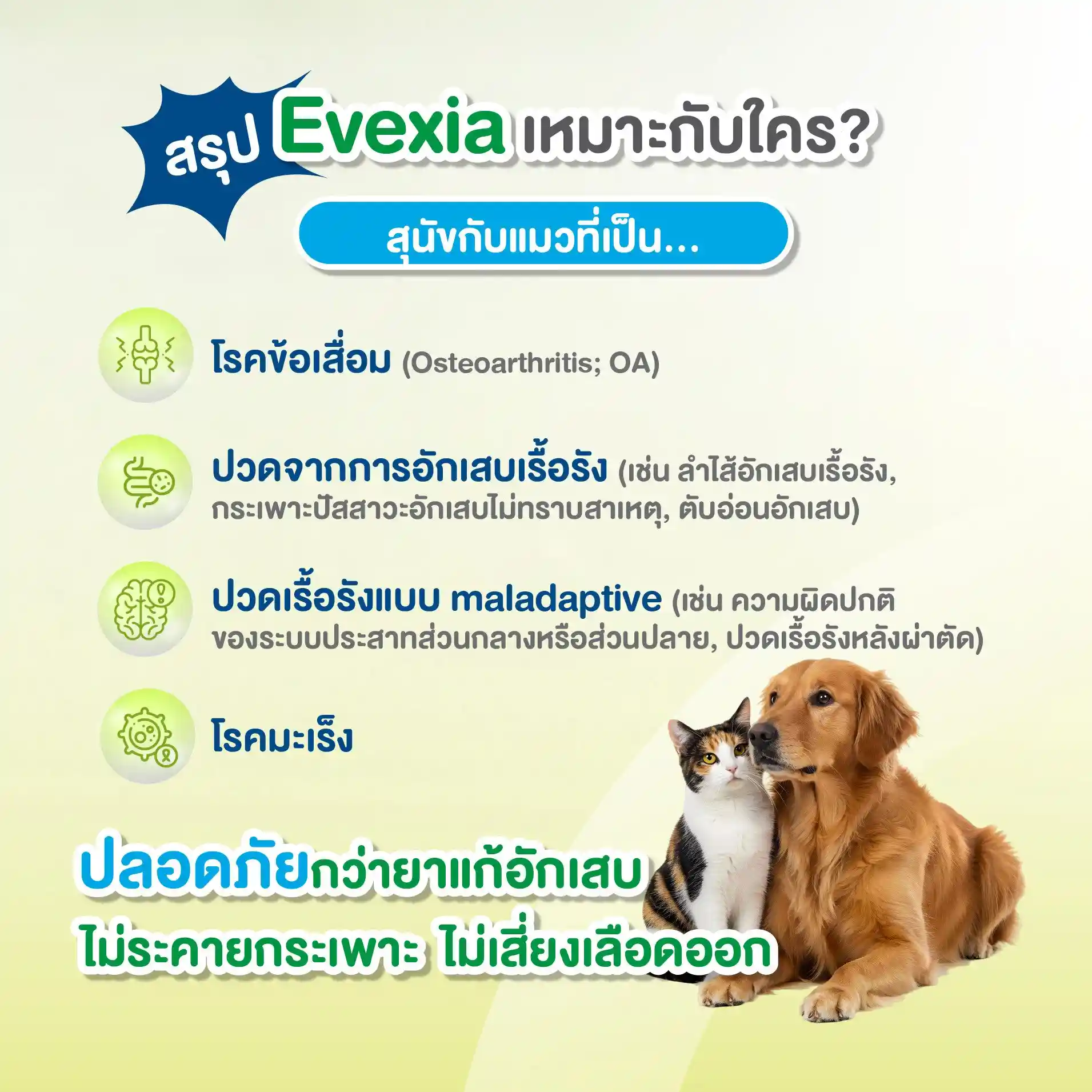 กลไกออกฤทธิ์แบบ Multi-target โดยเน้นที่ระบบประสาทส่วนกลางและส่วนปลายซึ่งควบคุมการรับรู้และตอบสนองต่อความเจ็บปวดในร่างกายสัตว์